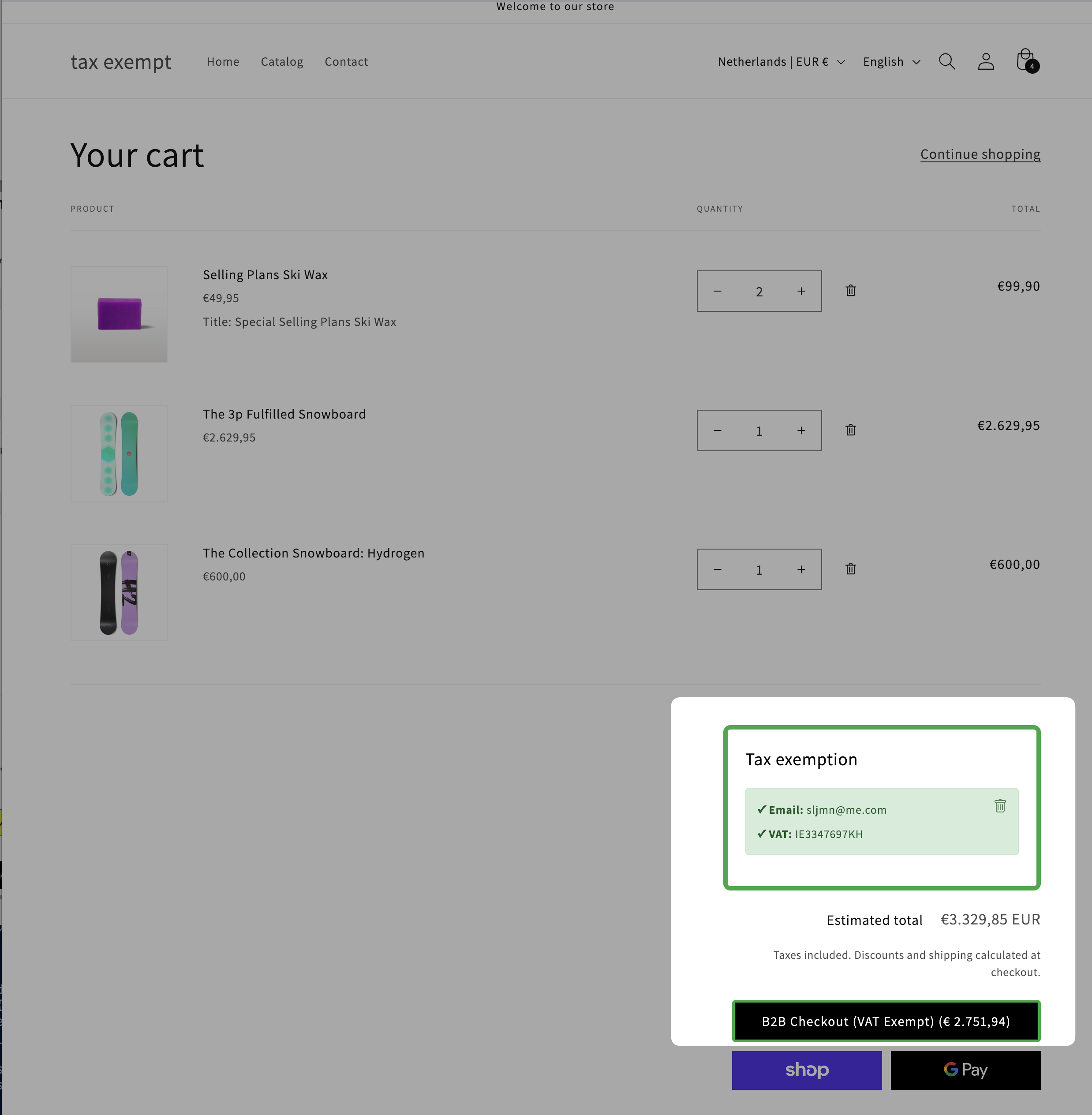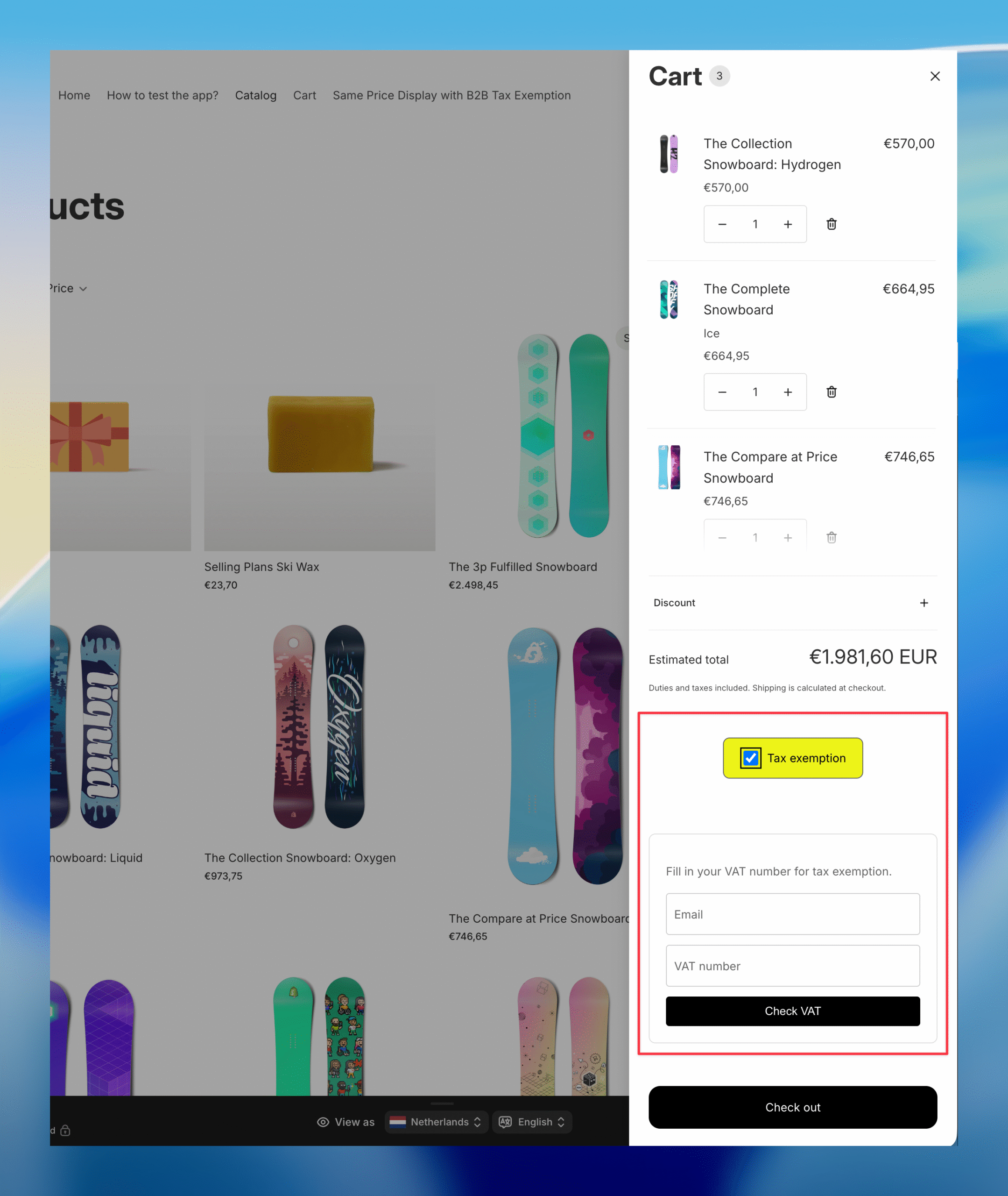 In dit artikel leer je hoe je zakelijke klanten op een slimme manier laat zien dat ze BTW-vrijstelling kunnen aanvragen in jouw webshop. Dit kan in de mini winkelwagen, ook zonder Shopify Plus.
