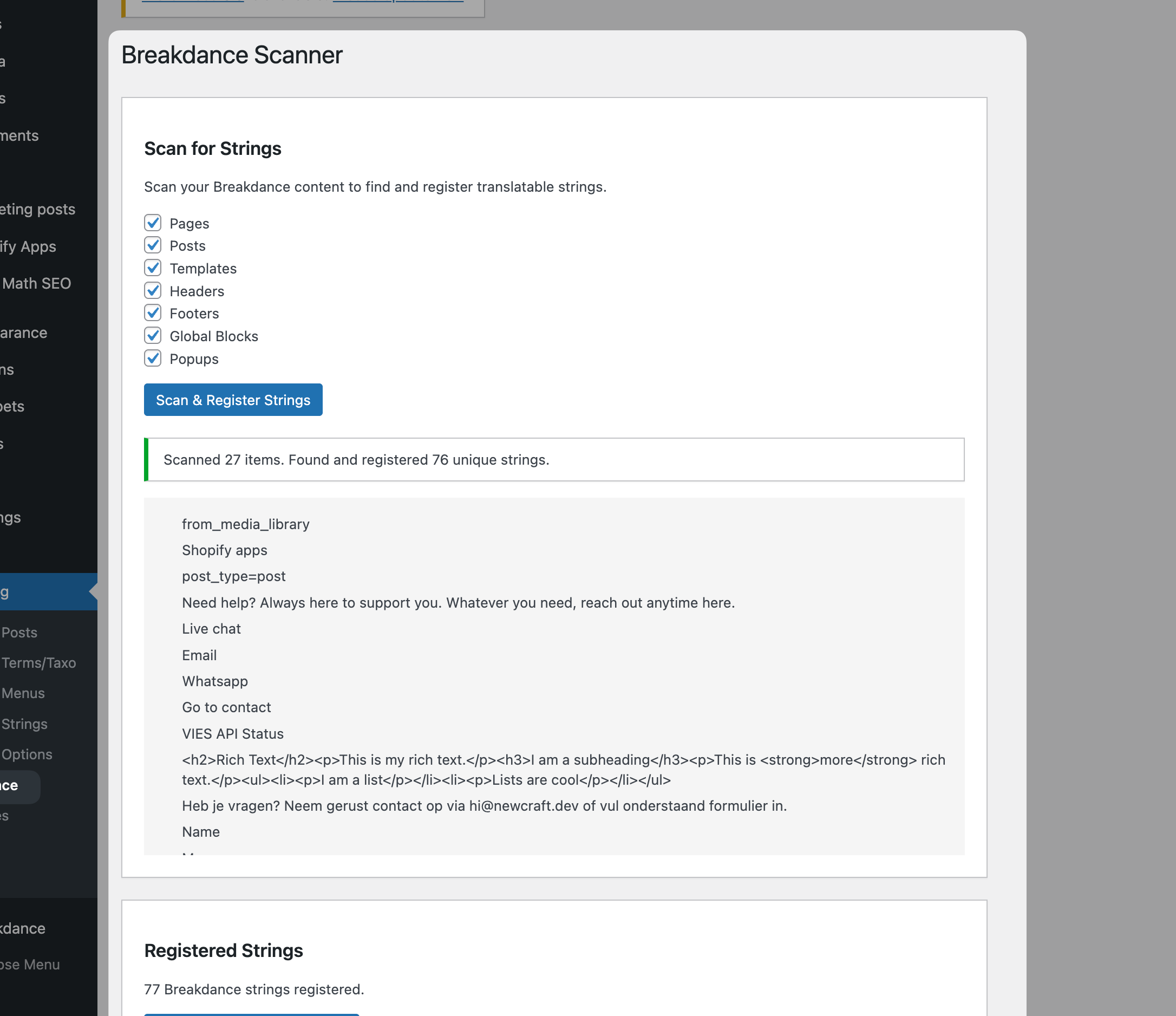 TLDR: We run Breakdance Page Builder on our marketing site with full multilingual support using a modified version of Falang. Our fork scans the builder data, extracts every translatable string, and presents a clean side-by-side translation interface. We’ve also added AI translation via OpenRouter, one click translates any field using GPT-4o, Claude, or your model of choice. It’s currently in beta. If you need Breakdance + multilingual and want access, reach out.