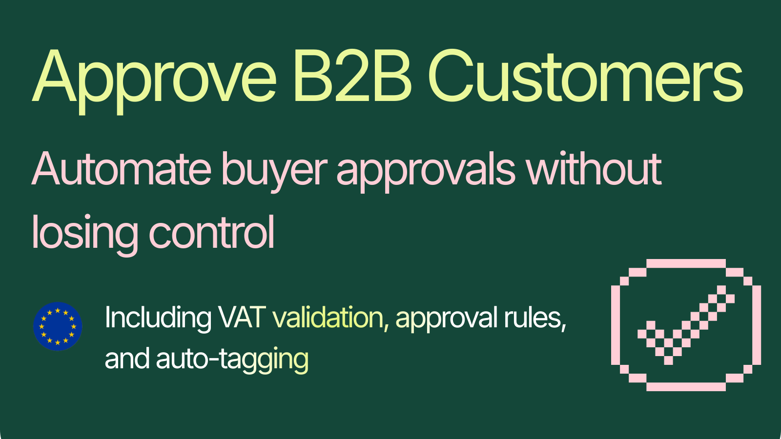The strongest Shopify B2B stores don’t rely on manual heroics. They use clear rules for approvals, tax compliance, credit control, and order data so the whole team can scale without adding headcount or risk. Every feature on this list exists to replace a manual process with an automated one, and to replace tribal knowledge with system rules.